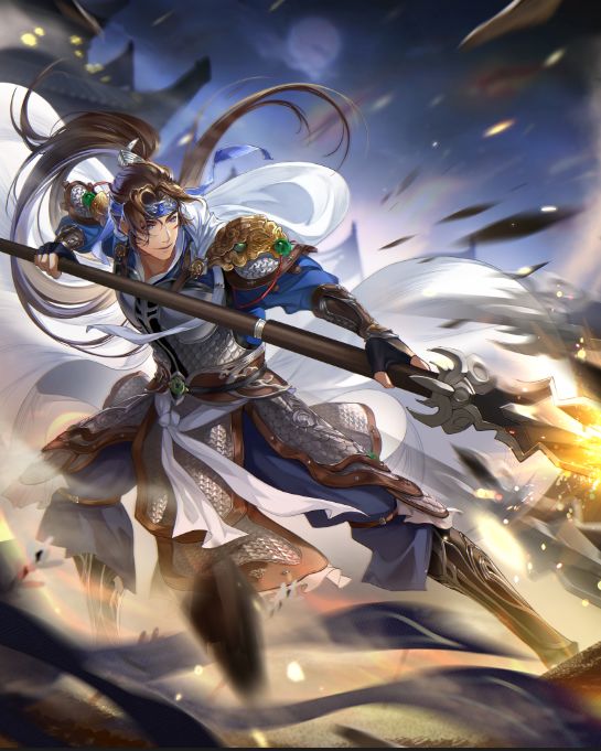 技略:对普攻目标及其周围小范围敌人,造成210%武力伤害。之后,自己获得20%最大兵力的护罩,持续30秒。