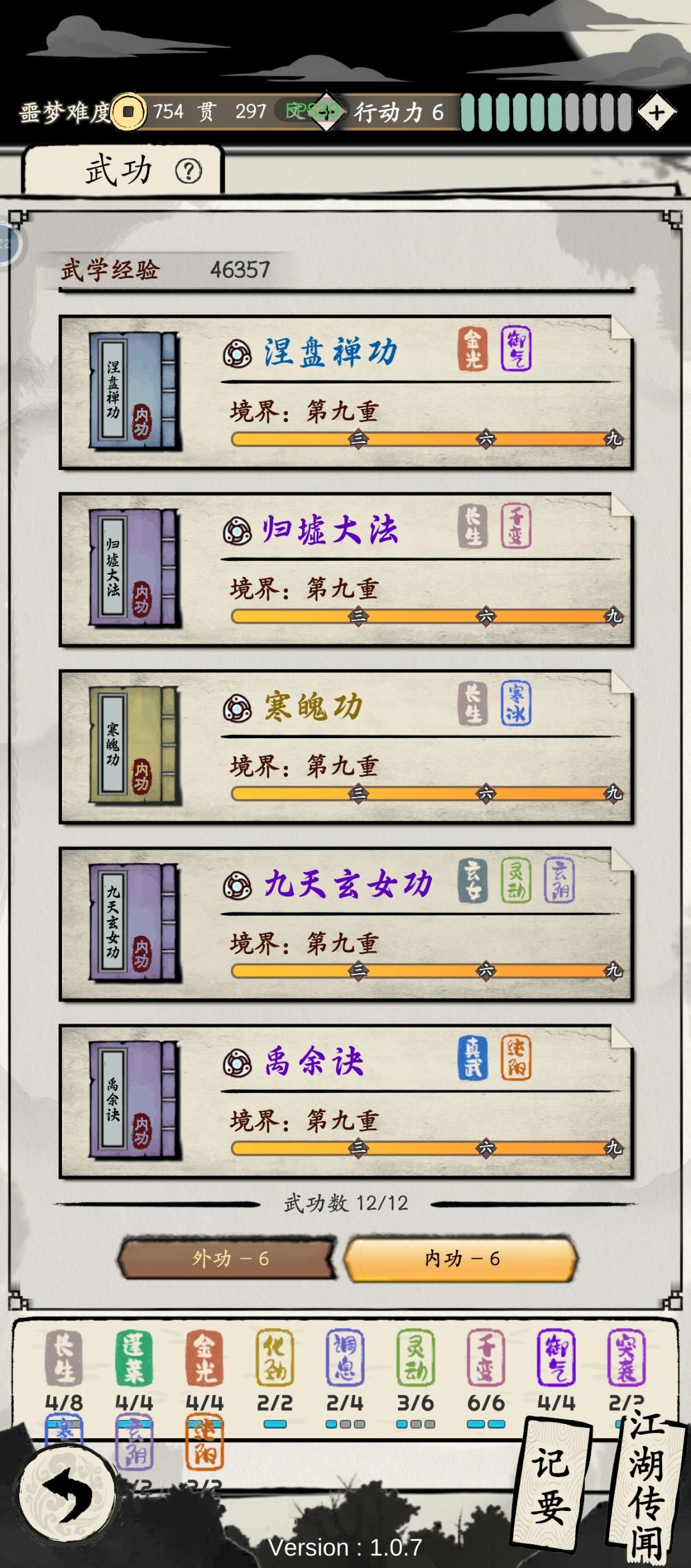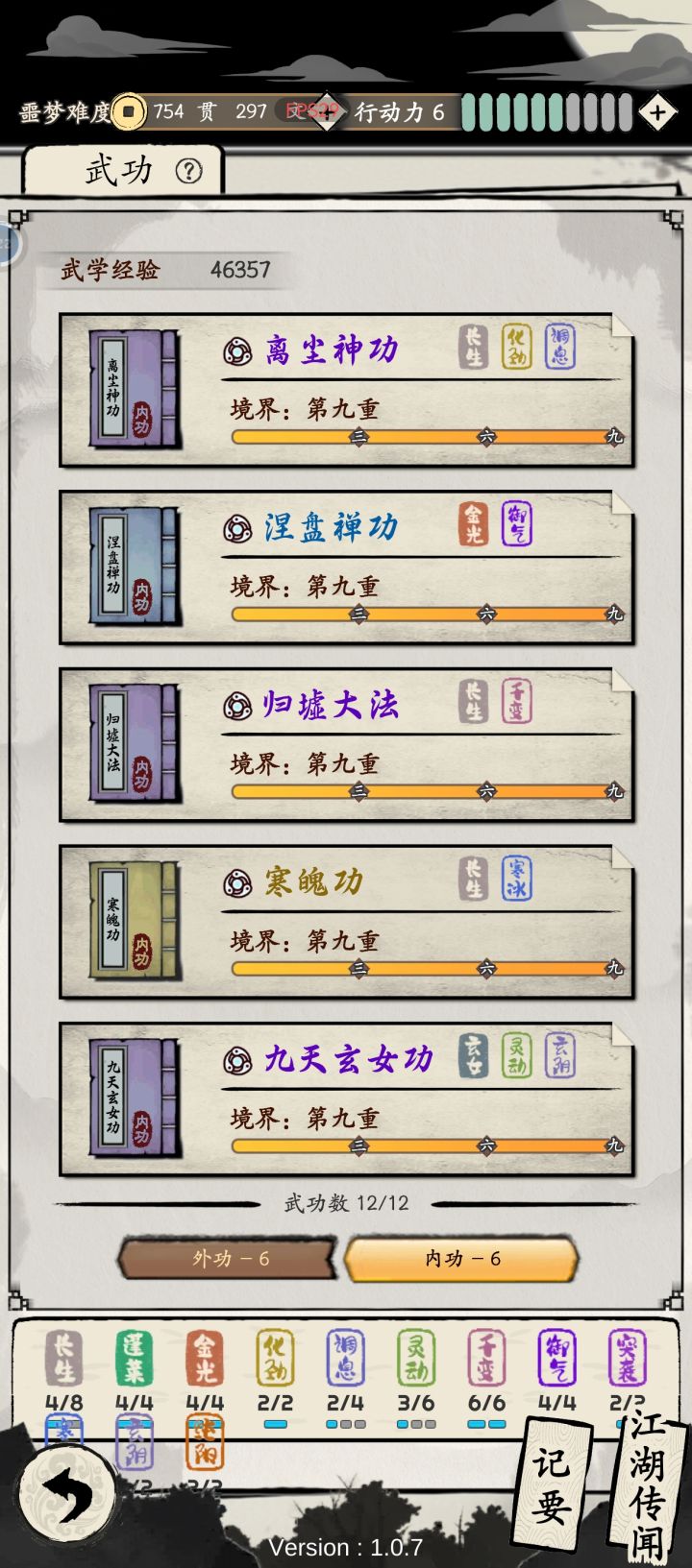 战斗时候因为4御气的存在,普攻范围超大,每次出手都可以保证造成不低的aoe伤害,且连发概率不低。而一旦被对手近身,也有内功回真气,并且涅槃神功与九天玄女功大幅加强低血量的战斗力。既有挂机强度,也有手操快乐。