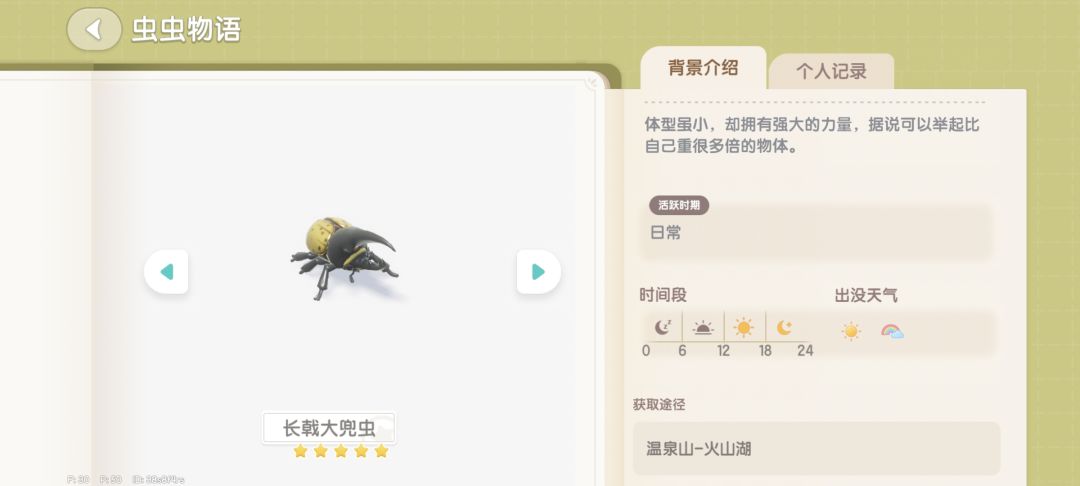 抓捕策略 此虫和前面所有树栖虫刷新细节略有不同,经常会刷新在树干背面(玩家不可直视处)只能说,保持安全距离,看到不好探的树干先泡泡打过去。长按蓄力抓,星星提示后两格左右安全距离