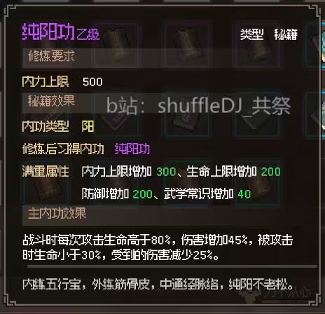 入队给一本紫内功纯阳功和忘忧丹