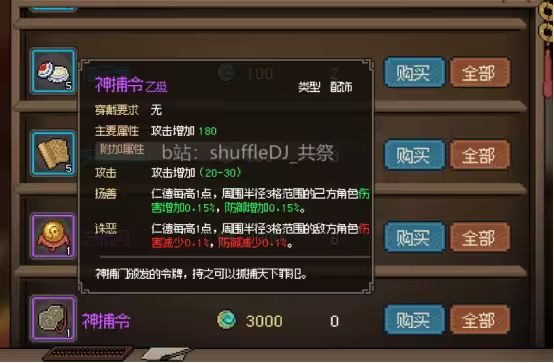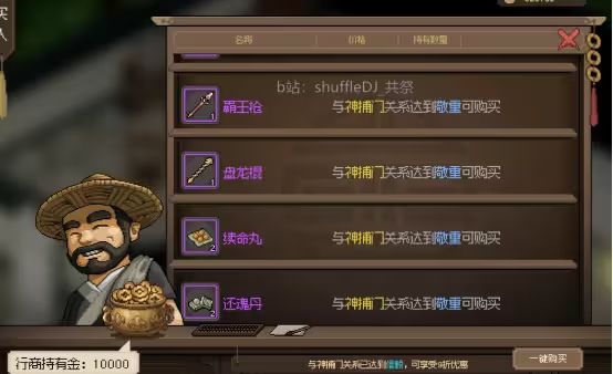 紫色装备前期过渡用不错 没有加入神捕门也可以买 只是好感还是必须