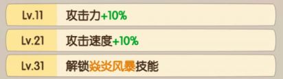 被动技能:烈焰剑锋攻击时额外对敌人造成生命上限0.2%的伤害,可以使用祈愿币,可强化10次