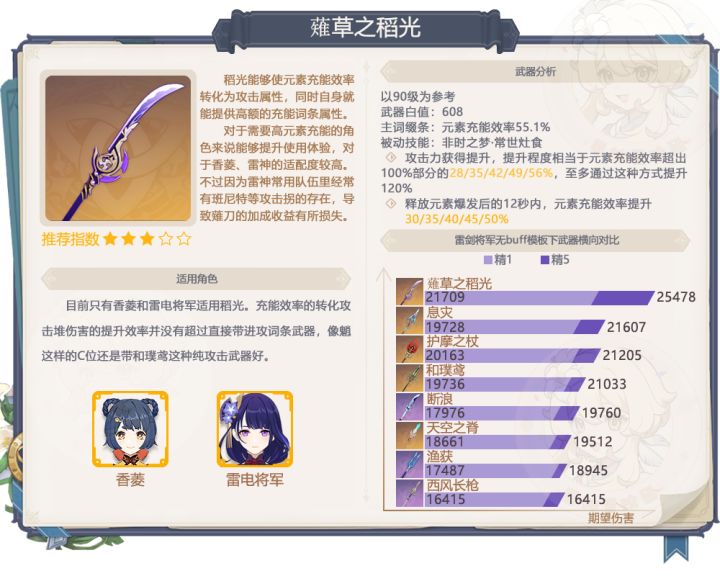 2、薙草之稻光抽取建议:薙草这把武器,只有香菱和将军最适用,但是雷神对这把武器的优先级不如2命所以除非你雷神2命了想进一步提升伤害可用抽取,不刚需