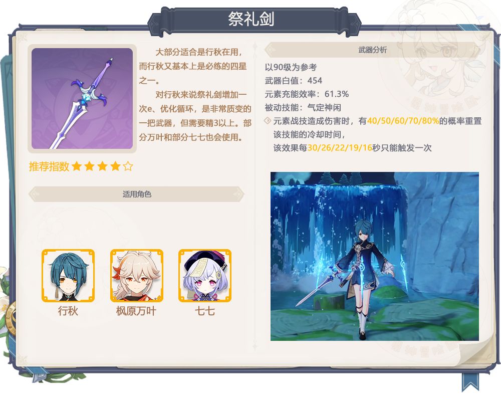 3、祭礼剑抽取建议:这真是一把好武器,四星武器里面最好用的一把至今无可代替,常驻武器,除非一把都没有,否则不太建议去捞