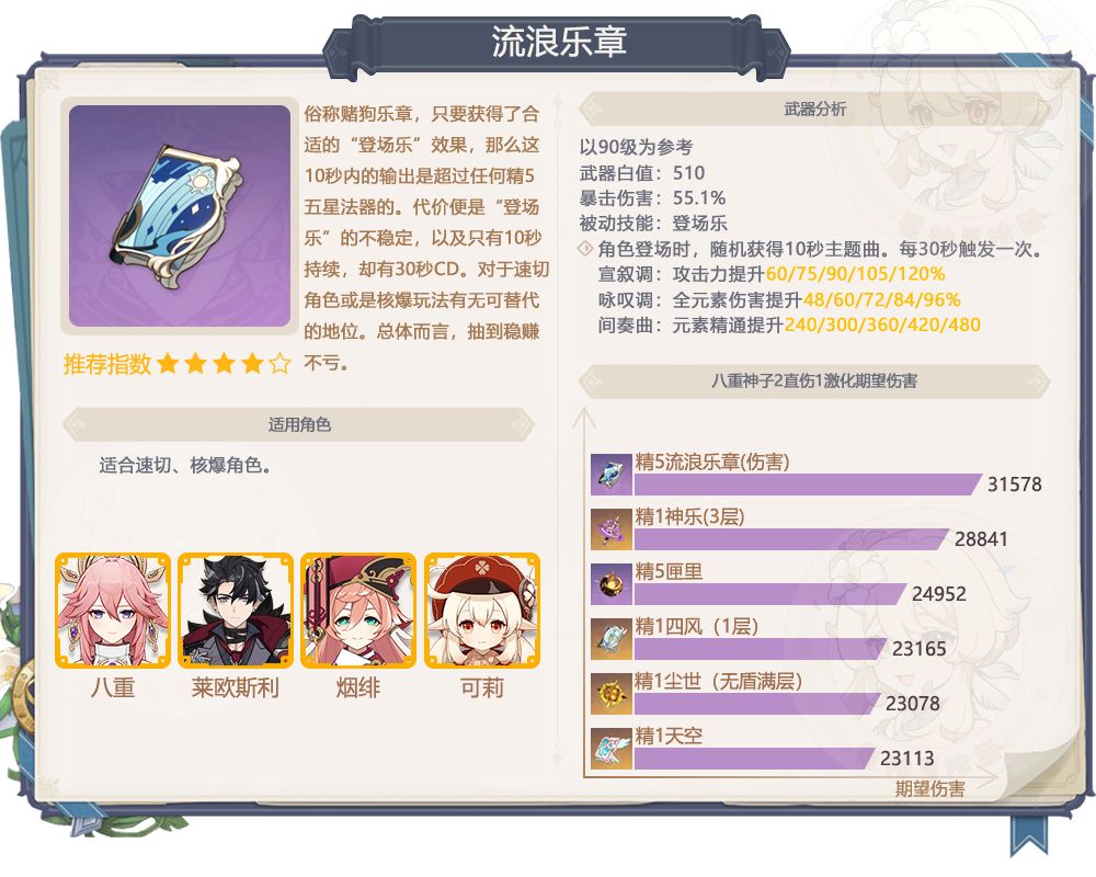 6、流浪乐章抽取建议:赌狗武器,常驻,泛用性是高的,但是因为是常驻,所以基本很容易歪到,不需要特意去抽