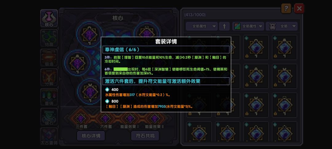 这个其实我感觉没什么重点主要是这个东西变化程度不大,大概要讲的就是前期老魔女档位是200和400宿命系列就是400和800达到这两个档位伤害提升巨大(我依稀记得当时我200w伤害解锁符文就到了5亿伤害),要选择自己对应的魔女符文,宿命系列的符文是75关小秘境后开启打造,新手萌新要依靠6件四同色装备去凑能量,可以通过调整小符文属性弥补暴击值和穿透的不足。