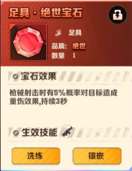 宝石效果:枪械射击时有5%概率对目标造成重伤效果,持续3秒。