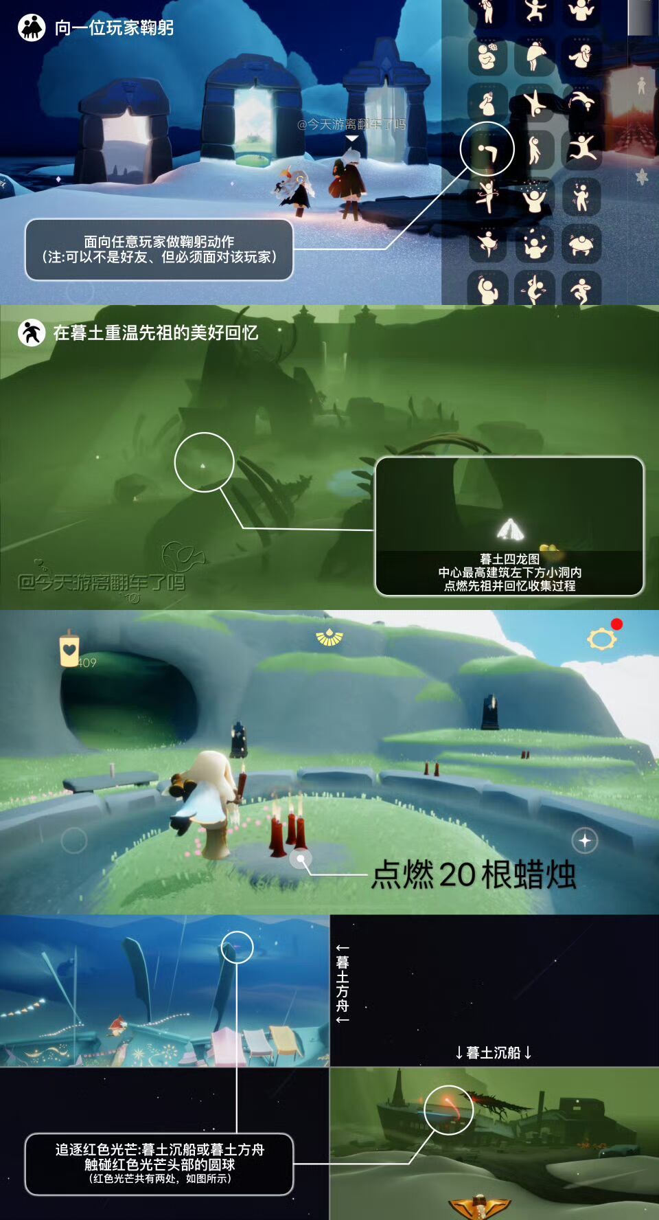 《光遇》游戏中每天的每日任务及大蜡烛的位置都不相同,玩家完成每日任务及收集大蜡烛都可以得到丰厚的兑换奖励,奖励可以用于兑换各种动作及道具,不过很多小伙伴不知道每日任务怎么做,又懒得自己去找大蜡烛的位置,我们汇总了每日任务的完成攻略以及蜡烛位置,一起来看看吧!