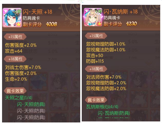 首先,我们可以将最想要的魂卡属性镶嵌在主卡上。至于副卡上的属性,则主要看洗练出的+15、+18词条是不是你所想要的,而不是仅仅看魂卡评分哦。