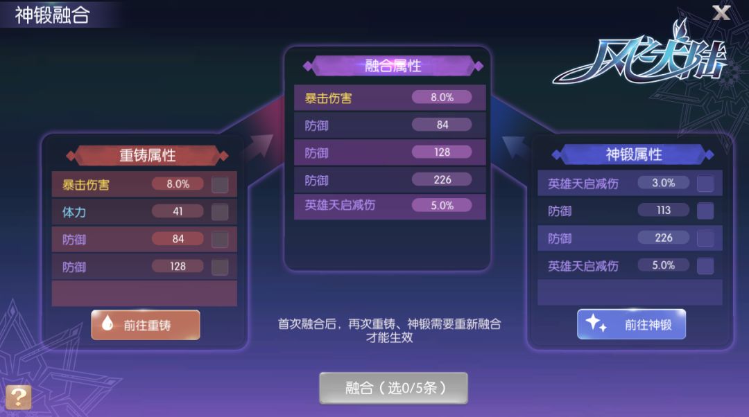 值得注意的是,最新开放的第三页副卡孔位,开孔条件除了要满足一定数量的晶魂石,还需要装备融合属性中的金色属性词条达到对应的数量。想要解锁更多副卡孔位的小伙伴,别忘了前往神锻或重铸装备哦~