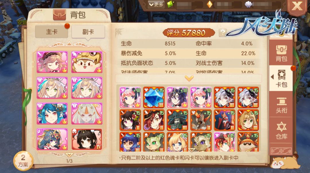 但作为主卡孔位的补充,镶嵌在副卡上的魂卡有一定的门槛:只有二阶以上的红色魂卡、闪卡才可以被镶嵌于副卡卡槽中。