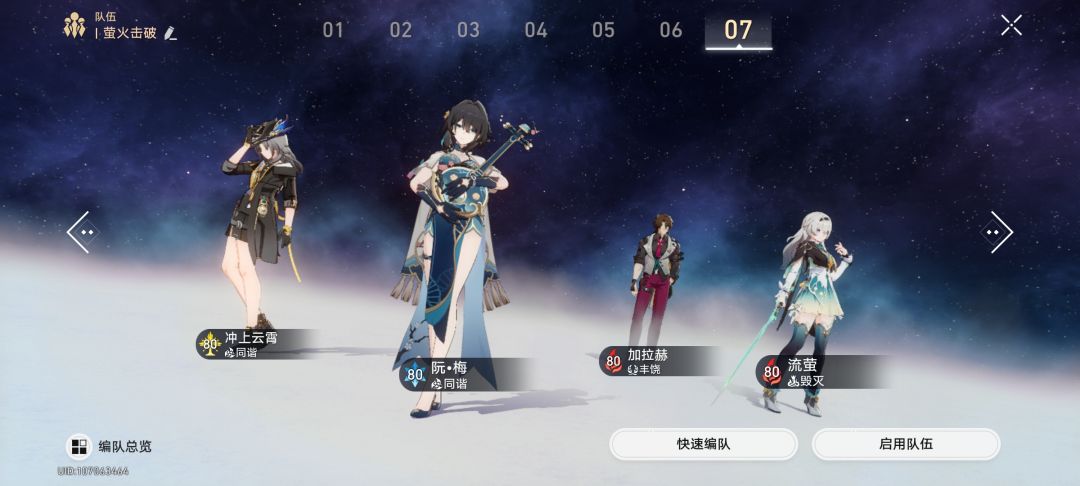 7.荧火击破:超击破队。流萤三体人,成队又快捷,属于CH教配队了。