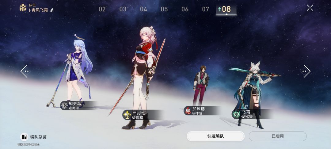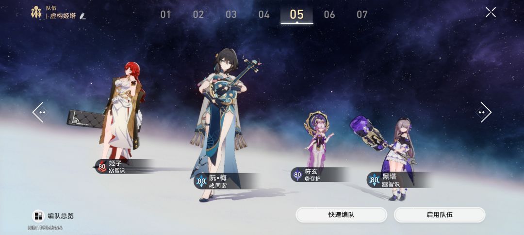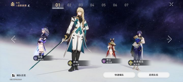 不求满星,把所有属性队伍凑了出来,有些老队伍是版本之泪了,基本也不上场,纯收集。争取给9个配队空挡填满,下一步就囤着抽联动角色,等崩三和FATE吧。