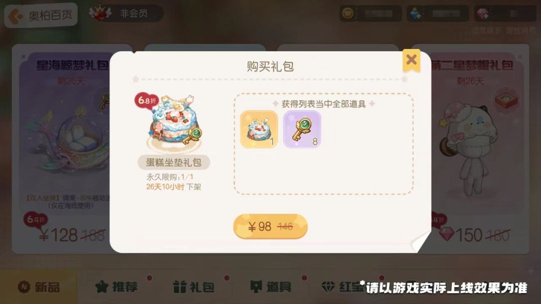 「蛋糕坐垫礼包」限时上架,购买可获得「生日蛋糕坐垫」三人座椅和「时空之钥」奖励,喜欢的小奥比们快快行动吧!