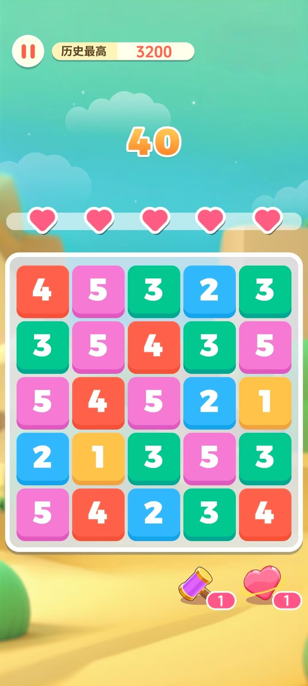 在5*5的棋盘内,玩家通过不断点击数字,让相同的数字相吸,3个及以上的数字相吸时自动合成一个已消除数字加一的新数字,当显示盘中可点击次数用尽时游戏结束。