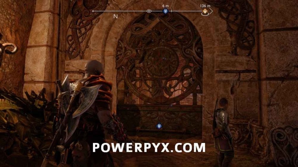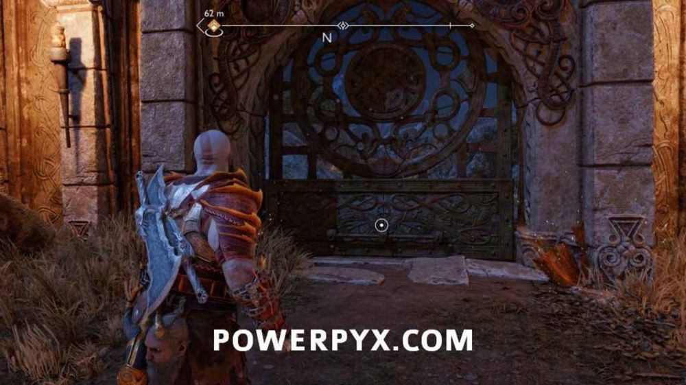 穿过落水洞,打开下图所示大门进去。