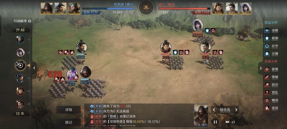 在此特别鸣谢给本文提供创作素材的玩家朋友,他在游戏里的ID名为“浪丨二锅头”,我不是第一次写他的战报了,这哥们是个相当有想法的人。浪丨二锅头此战利用蔡文姬、陆逊和孙坚摆出箕形阵,面对关羽、夏侯惇和邓艾组成的热门双减队,只用了半场就清退了二爷。更令人惊叹的是,二爷是被混乱状态的夏侯惇摆乌龙击溃的,蔡陆虎乱火流的细节如何,且看下文分解!