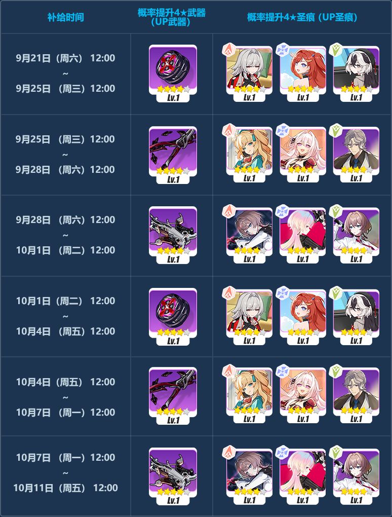 ◆保底规则:每10次庆典装备补给必定获得4★武器或圣痕。