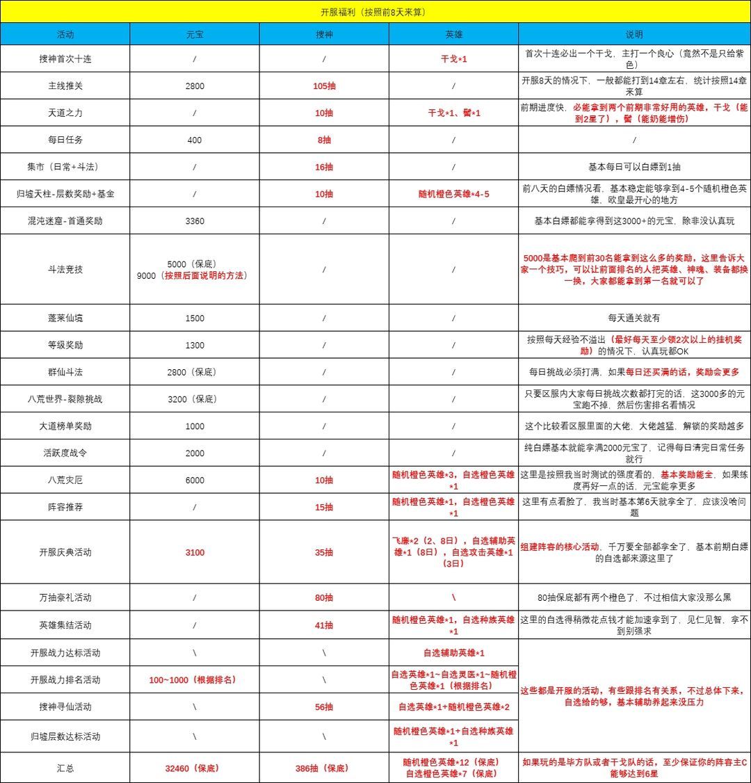 开服2个小时多了,看到不少萌新在问福利的东西,我把前8天大概能拿到的先做个汇总