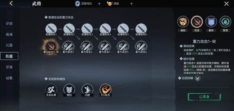 当武将提升至一定的等级,就相对应解锁某些技能或连招,这个环节并不是直接增加武将的评分,而是更有利于小霸王们发挥出武将的实力,如武将14级解锁蓄力攻击6和18级解锁EX攻击之后,武将的实战战力将获得大幅度提升,也能够更快的攒满无双技。