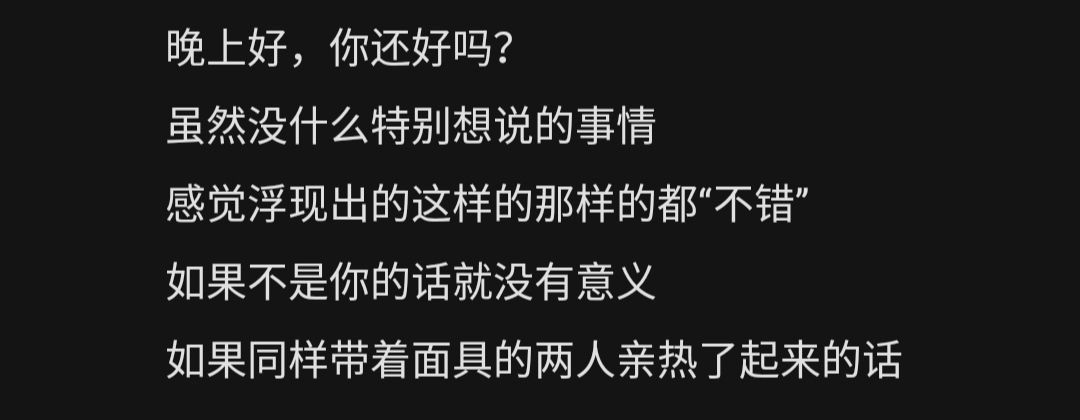 二是女主觉得自己与恋人的隔阂很大,两人互相对对方藏有心事,像带着面具一样,也对此感到失望,这个理解是Iriya结合副歌部分第一段的歌词想出来的.