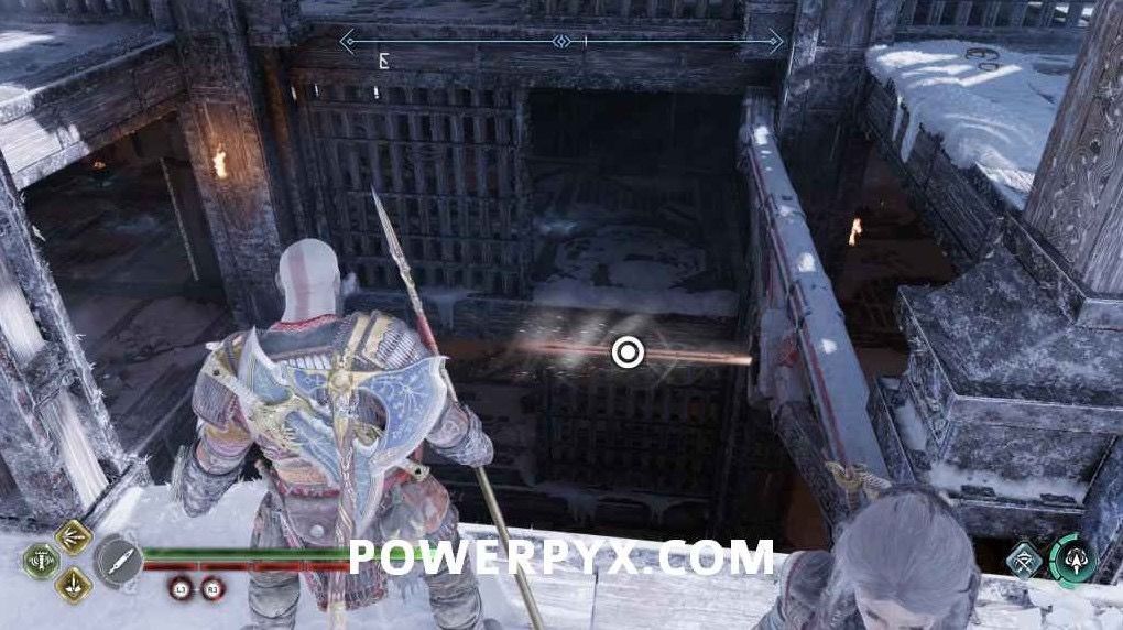 摆荡到下面后,可以在天井底层看到第三个符文。