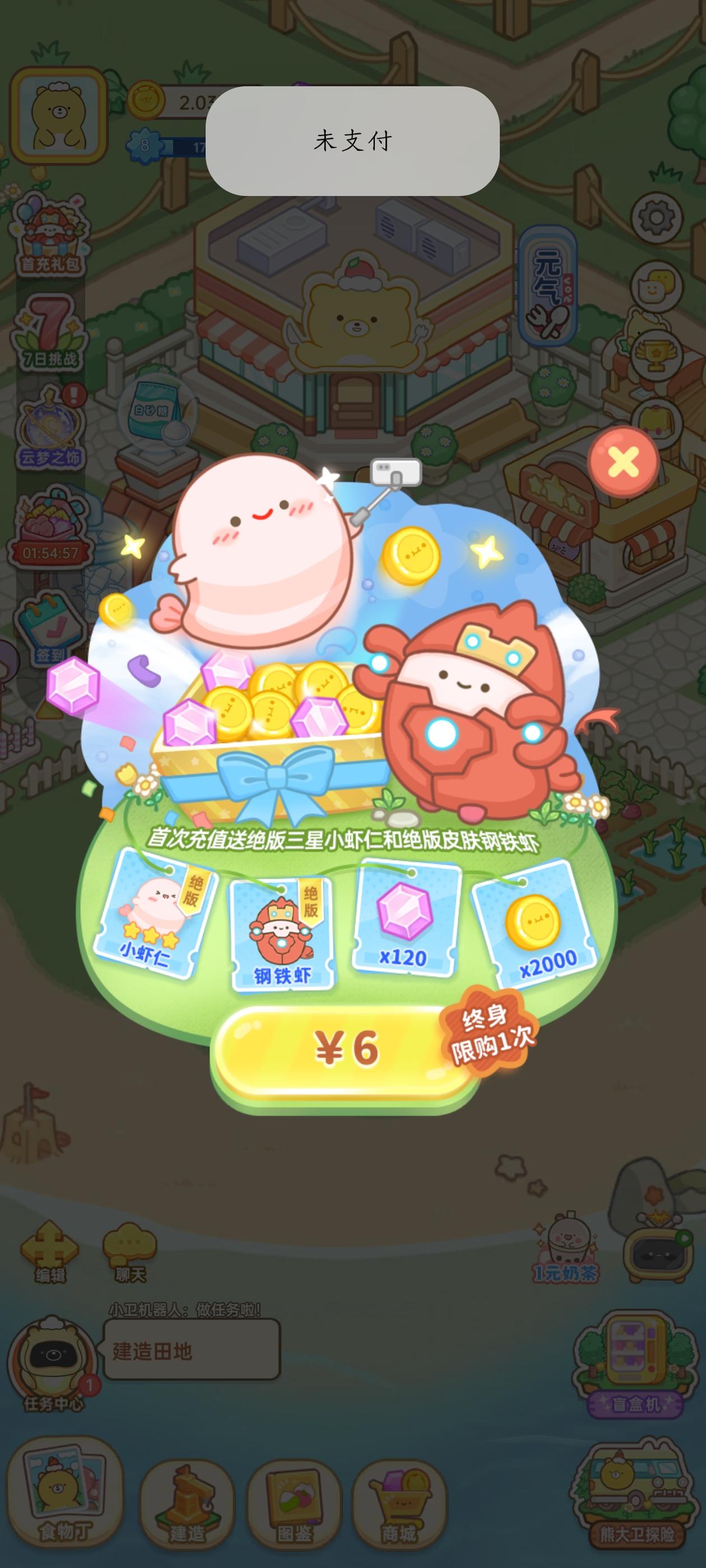 卡的点都点不动就算了,开了个月卡还不算首冲?首冲还得给6元,然后就是各种繁琐的东西不能一键操作,点来点去像找了班上!有的还只能充钱才能获取那你给我任务干嘛?
