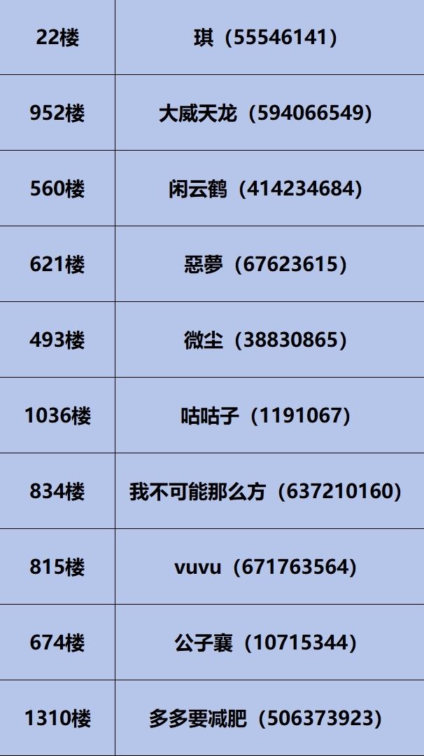 注:部分中奖的楼层未满足活动参与要求,中奖资格将顺延至一下层满足活动要求的楼层。