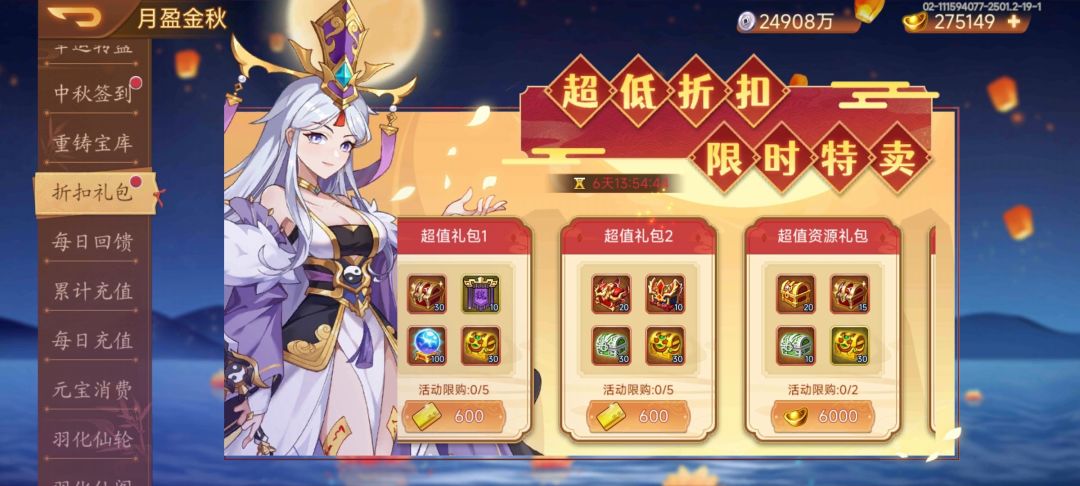 活动内容:活动期间,超值礼包限量折扣出售