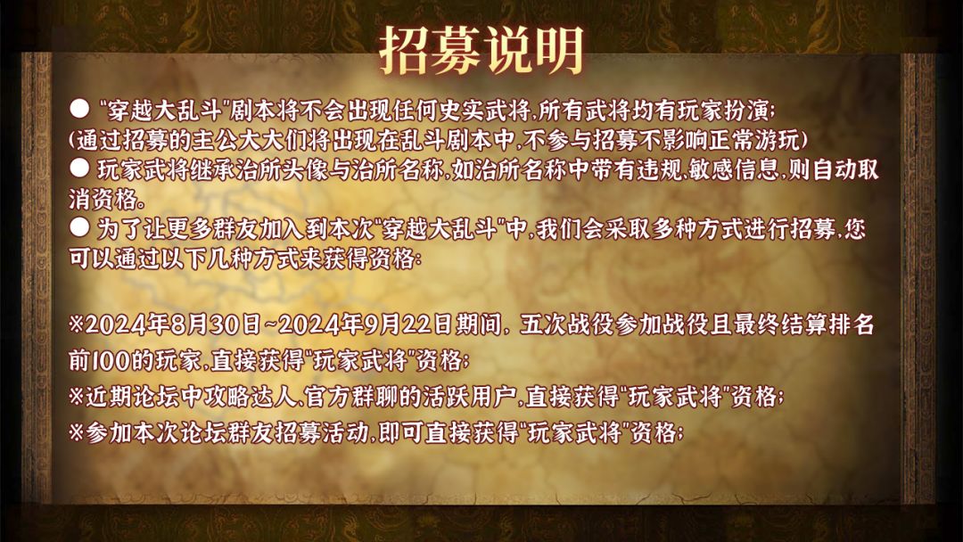 ※ 参与活动即可直接获得“玩家武将”资格!