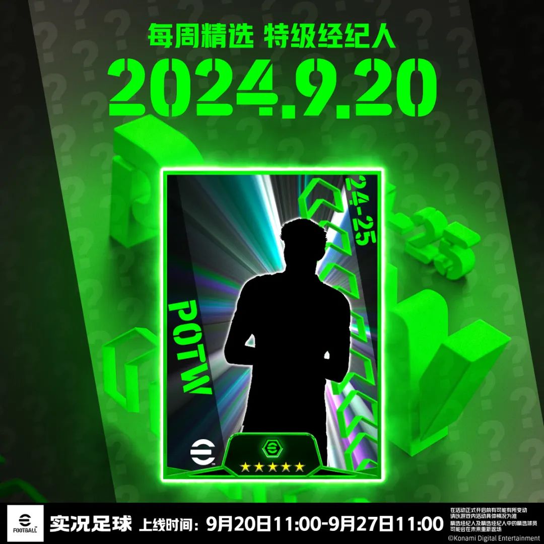 【每周精选 特级经纪人(9.20~9.27)】明日上线,你将有机会获得本周在实况赛场表现优异的精选球员。