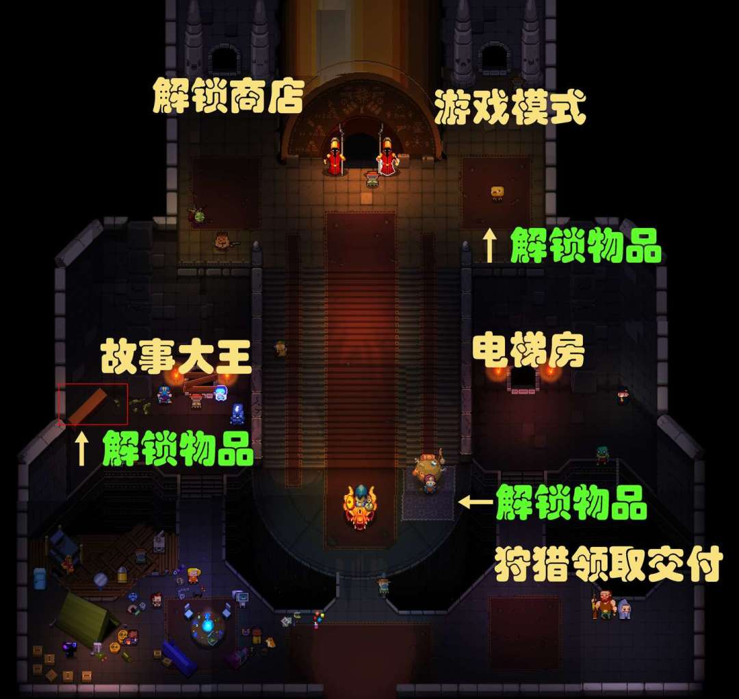 4,在新手教程的房间旁有个故事大王,你每击败一个新Boss,可以在他那里听故事。而新手教程关卡里,有隐藏墙壁,开启并获得对应物品,可以解锁一个“枪牢中的新Boss”,有一定难度,击败它可解锁全新物品,并完成教授你“翻滚”的老师的遗愿。在击杀该Boss之后,后续关卡中,将概率刷新该Boss。