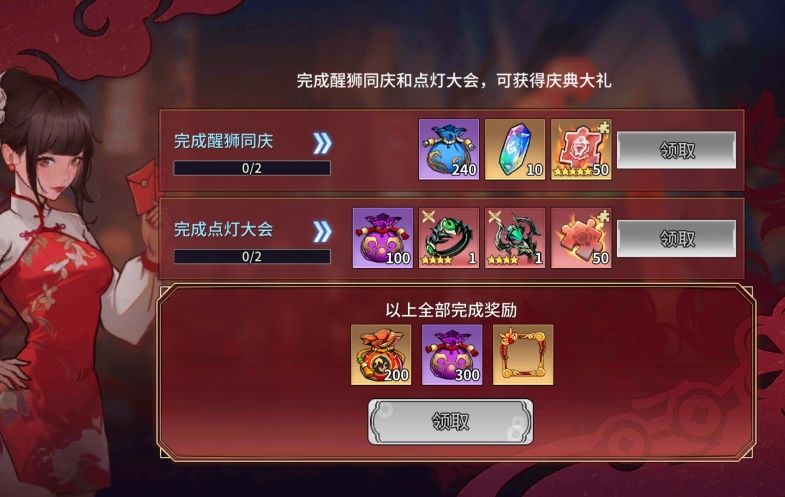 ●完成醒狮同庆和点灯大会,可获得庆典大礼。