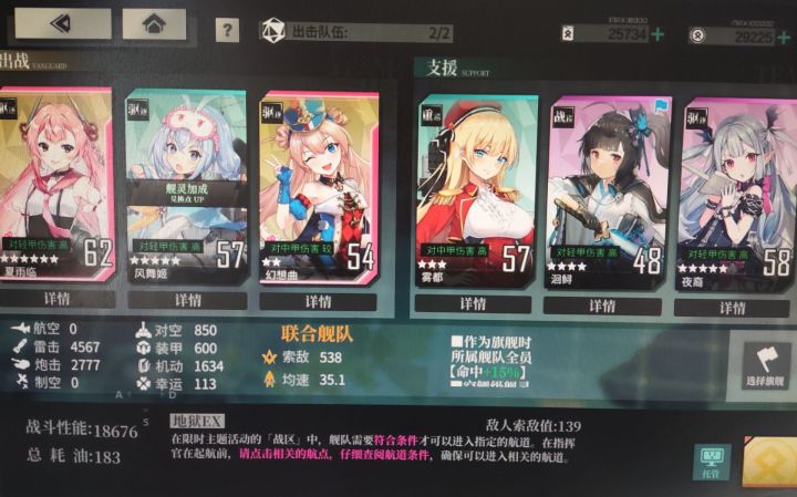 二队剩下的三个位置也要全部塞满,凑⑧船,为了尽量减低油耗,带一些有战斗能力的驱逐是很好的选择