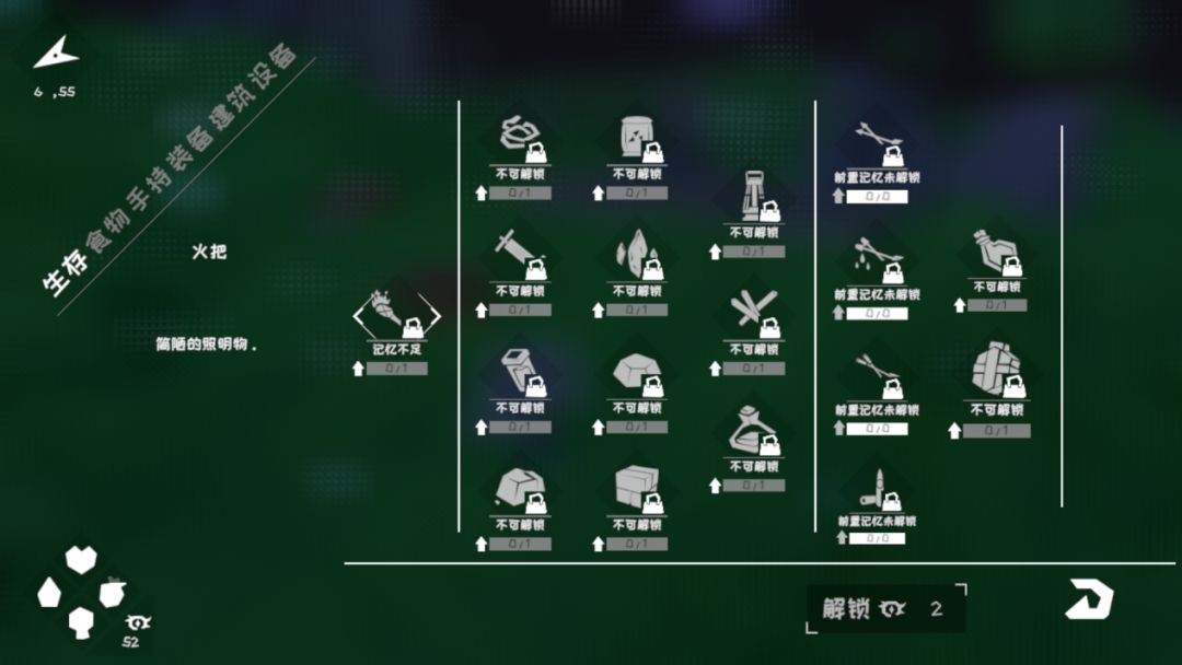 在梦境中,你的想象力越丰富就越强大,世界也就越清晰。你需要用『想象力』来解锁『记忆』,从而解锁一些制造工具的配方等。也需要消耗各种材料和『想象力』来制作物品。