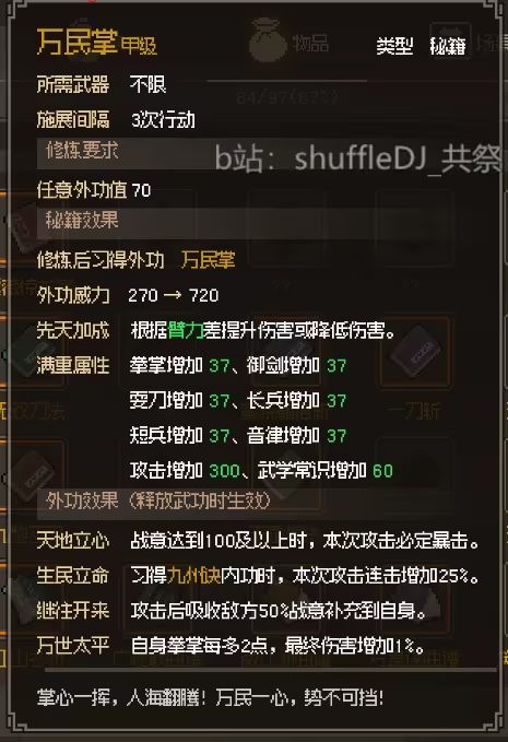 大侠立志传正式版 全甲级武功获取及个人修习推荐