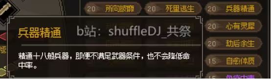 但兵器精通不推荐 因为拿了心有灵犀很容易到200在游戏中可以自动领悟!
