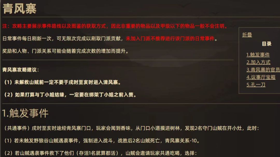 本攻略已收录至WIKI-门派势力-青风寨攻略板块,大家可以在游戏内WIKI对应页面随时查阅