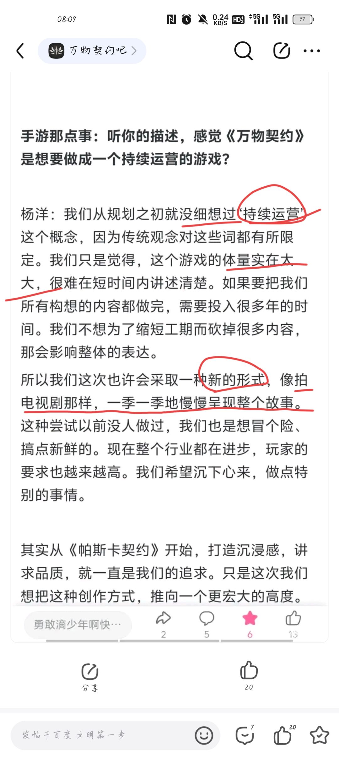 在贴吧看到一篇关于老杨接受媒体采访的帖子。其中谈到“持续运营”这个话题,如下是老杨对此做出的答复。