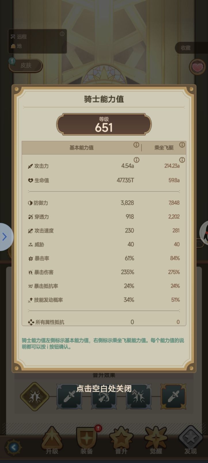 基本能力值计算飞艇相关buff增益后的能力值。适用于推图/boss战/元素之岛/机械坟墓/天空之塔等需乘坐在飞艇上进行的主线战斗。