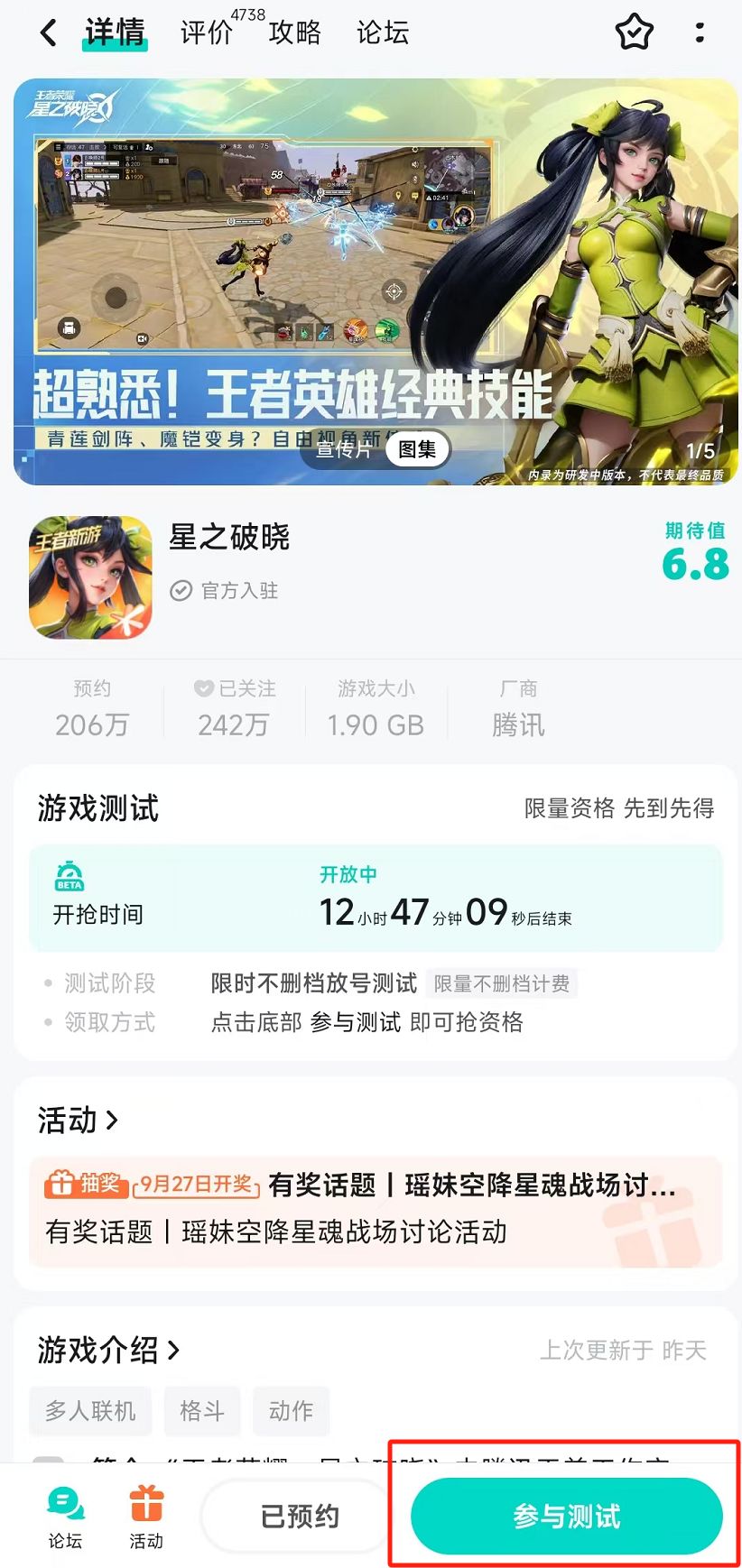 《星之破晓》星魂限号不删档测试火热进行中!我们为【TapTap】的召唤师准备了专属测试资格!即刻前往星之破晓游戏主页,参与【TapTap】限时不删档放号测试。活动时间9月20日11:00正式开启,测试资格数量有限,先到先得。