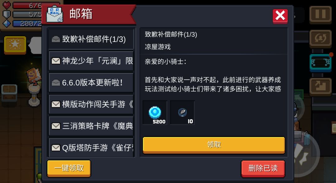 关于武器养成玩法测试的致歉补偿邮件也已发放至邮箱,小骑士们别忘了领取哦!