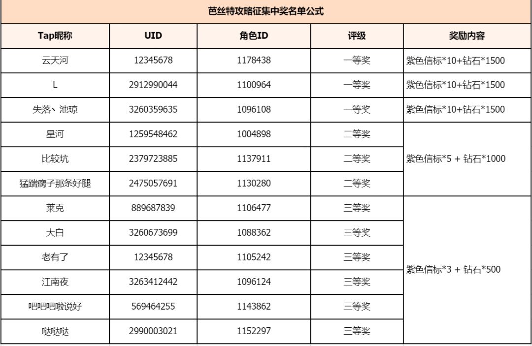 - 活动结束后将进行内部评选,获奖名单于7日内公布,奖励会在公式后会在7个工作日内通过游戏内邮件发送。