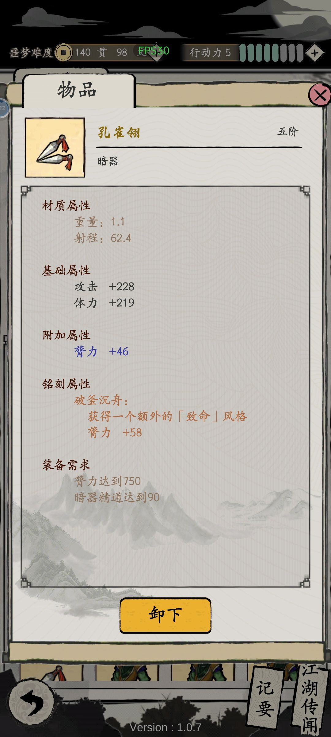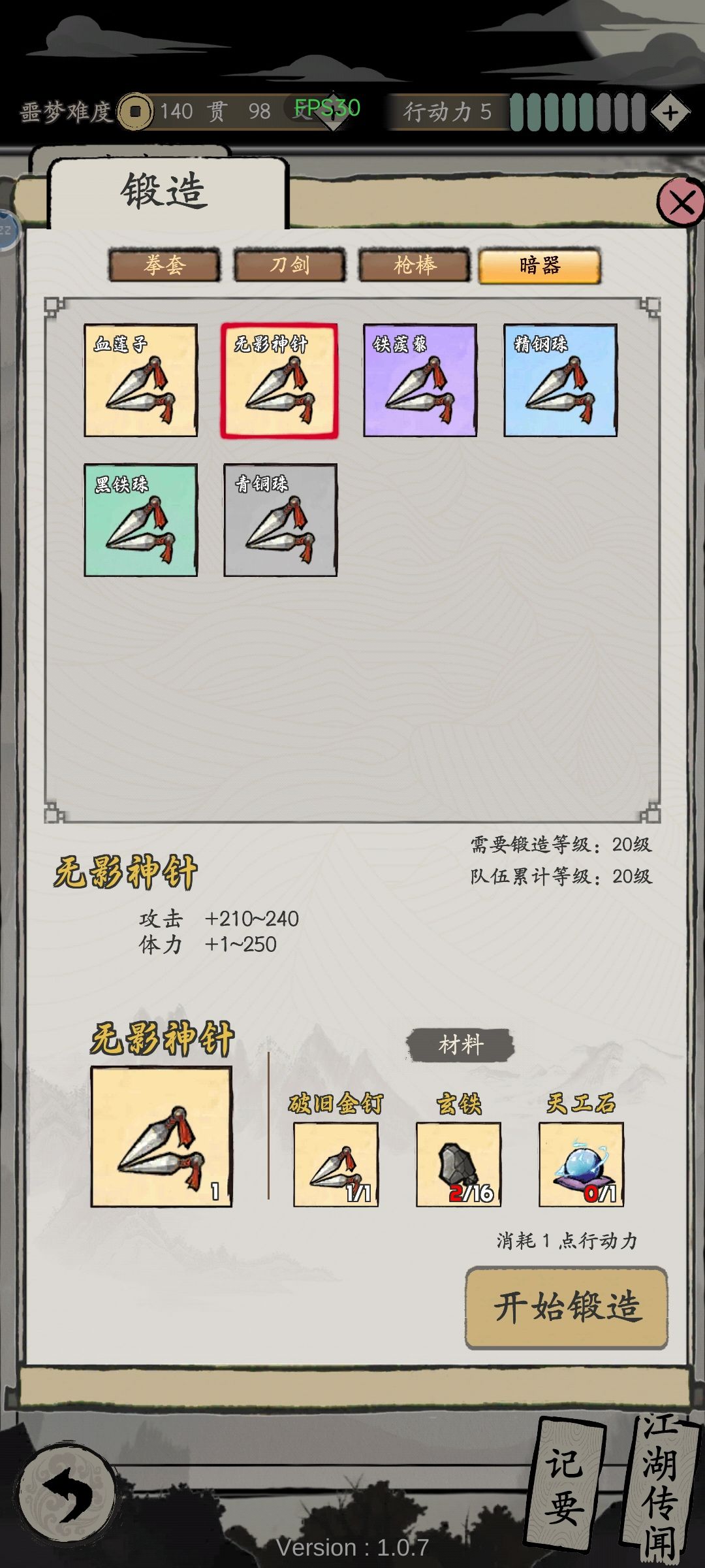 自创暗器功法风格刚猛 武器锻造62射程无影神针,神秘商人180贯采购配方,铭刻1致命2千变(用此套路可换任意武器自创功法 风格刚猛即可)