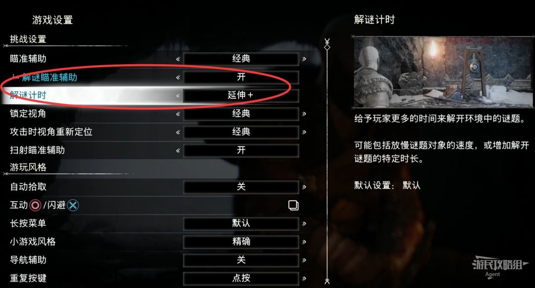在游戏设置里,把“解谜计时”切换为“延伸+”。亲测,可以放心慢悠悠地解谜,再也不怕解谜时间不够了!建议同时打开解谜瞄准辅助,用手柄玩动作游戏就别考验瞄准射击技术了,用自动瞄准省心省力。