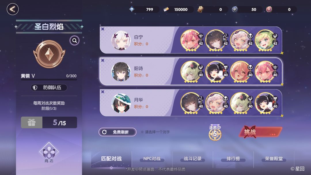 在下次测试中,全新对抗赛玩法将与星宝们见面!星宝们可通过该玩法挑战其他平行世界的特进班队伍,获得对抗赛积分并以此兑换大量奖励。喜欢轻度休闲游戏体验的星宝们也不用担心,对抗赛中也将设置AI队伍,挑战AI队伍一样也可获取积分哦!