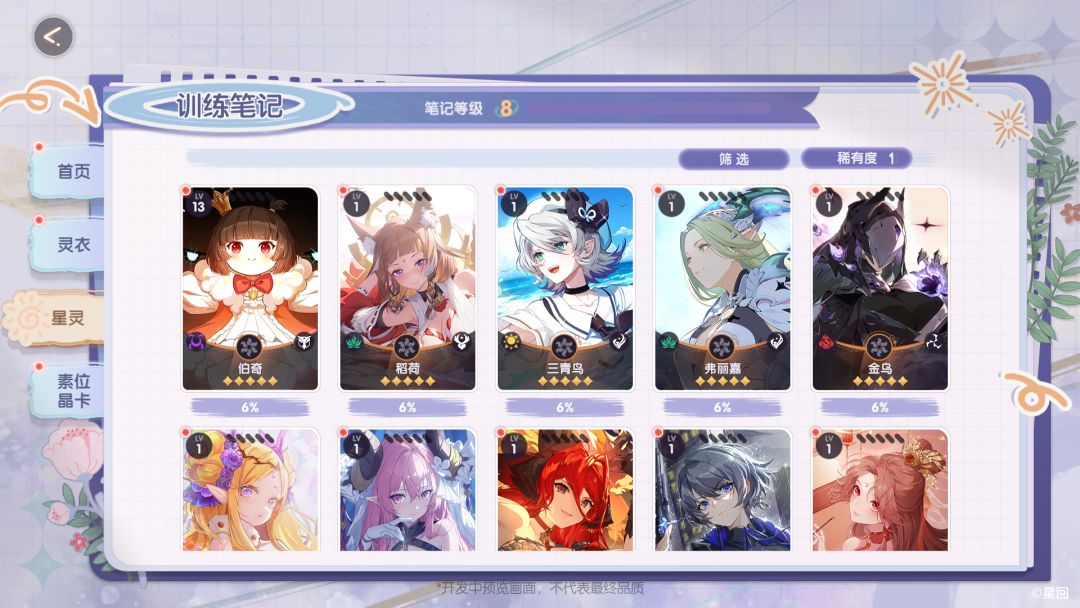 专为像格拉拉一样喜欢收集的星宝们准备的“训练笔记”也将在下次测试中与大家见面!训练笔记中将记录并展示星宝们目前已完成收集的灵衣、星灵和素位晶卡,养成进度也将同步展示!
