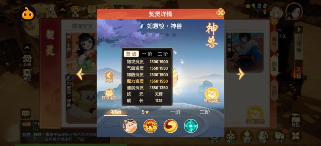 如意饺的气血和不屈先锋一样,为神兽中最高档1550,物防和魔力资质也高于不屈先锋,属于中游水平。肉厚附带的效果是如意饺的速度较慢,对于同样是法攻的重明鸟来说,速度慢是劣势,但对于群攻的如意饺,可以承担守尸的职能,从资质上看如意饺是一名优秀的血法守尸选手。加点推荐5魔或者4魔1体。