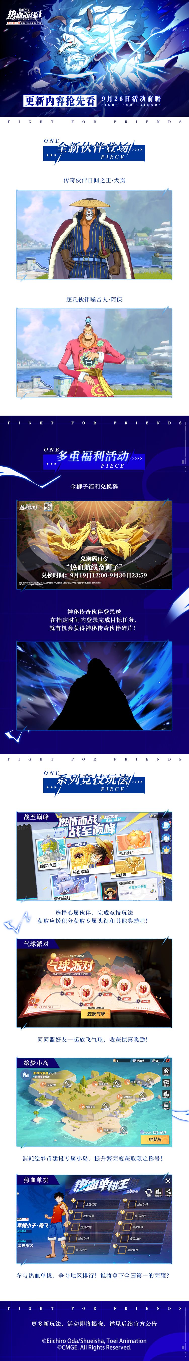 「惊喜福利」神秘传奇伙伴登录免费送,还有海域形象以及船长路飞正在放送中!