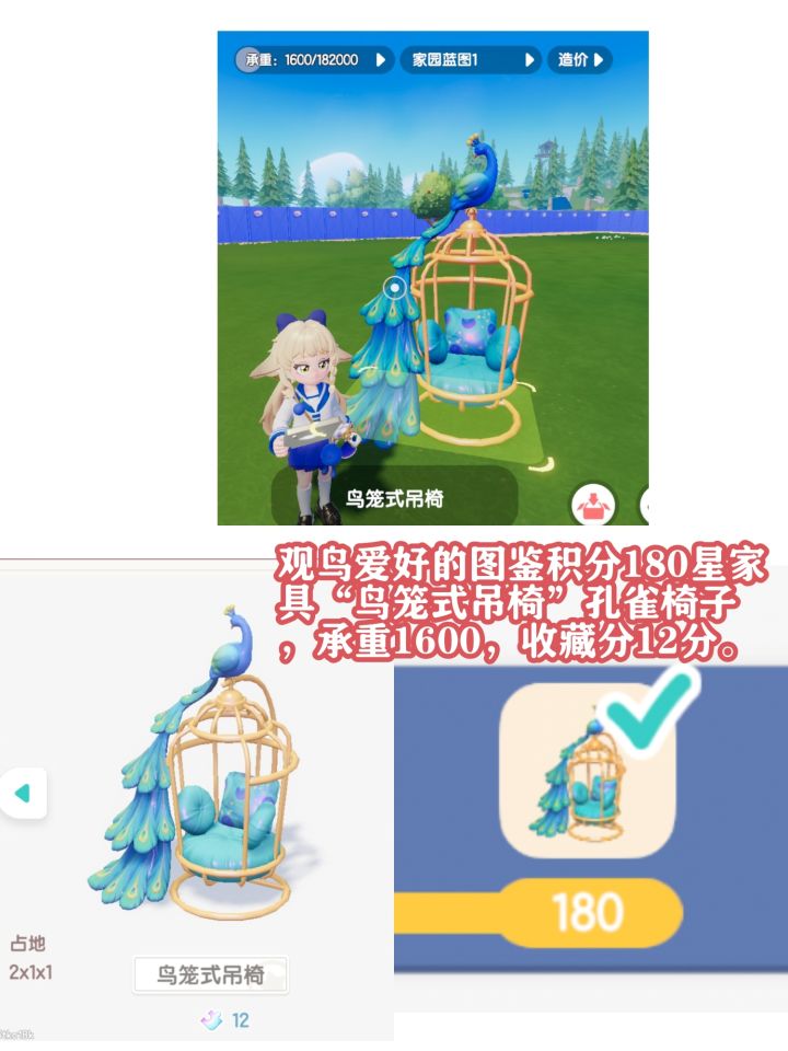 观鸟爱好的图鉴积分180星家具“鸟笼式吊椅”孔雀椅子,承重1600,收藏分12分。